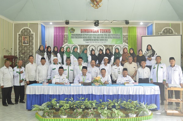 Kuala Kapuas, (Humas), Kelompok Kerja Madrasah tingkat MTs Kabupaten Kapuas menggelar Bimbingan Teknis Pengembangan Keprofesian Berkelanjutan (PKB) dan Penyusunan Daftar Usul Penetapan Angka Kredit (DUPAK) Bagi Guru Dan Kepala Madrasah Se Kabupaten Kapuas. Bintek dibuka langsung oleh Kakanwil Kemenag Prop. Kalteng H. Noor Fahmi yang ditandai dengan pengalungan tan...