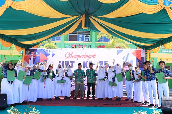 Kuala Kapuas (Humas), Pada acara puncak peringatan Hari Ulang Tahun MTsN 1 Kapuas yang ke – 25, dilaksanakan prosesi pembagian hadiah dan penghargaan. Momentum yang digelar pada Rabu (24/3), diberikan penghargaan kepada pemenang lomba yang diikuti oleh peserta didik madrasah setempat. Penghargaan berupa piala dan piagam, diserahkan langsung oleh Kepala MTsN 1 Kapuas Arbain...