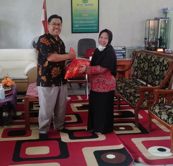 Kuala Kapuas (Humas), Seluruh pegawai MTsN 1 Kapuas yang tergabung dalam anggota Koperasi Madrasah setempat mendapatkan bingkisan Ramadhan. Bingkisan diserahkan secara simbolis oleh Kepala MTsN 1 Kapuas Arbainsyah selaku pembina Koperasi dan diterima oleh Dewiyana salah satu anggota, Sabtu (16/4). Arbain...