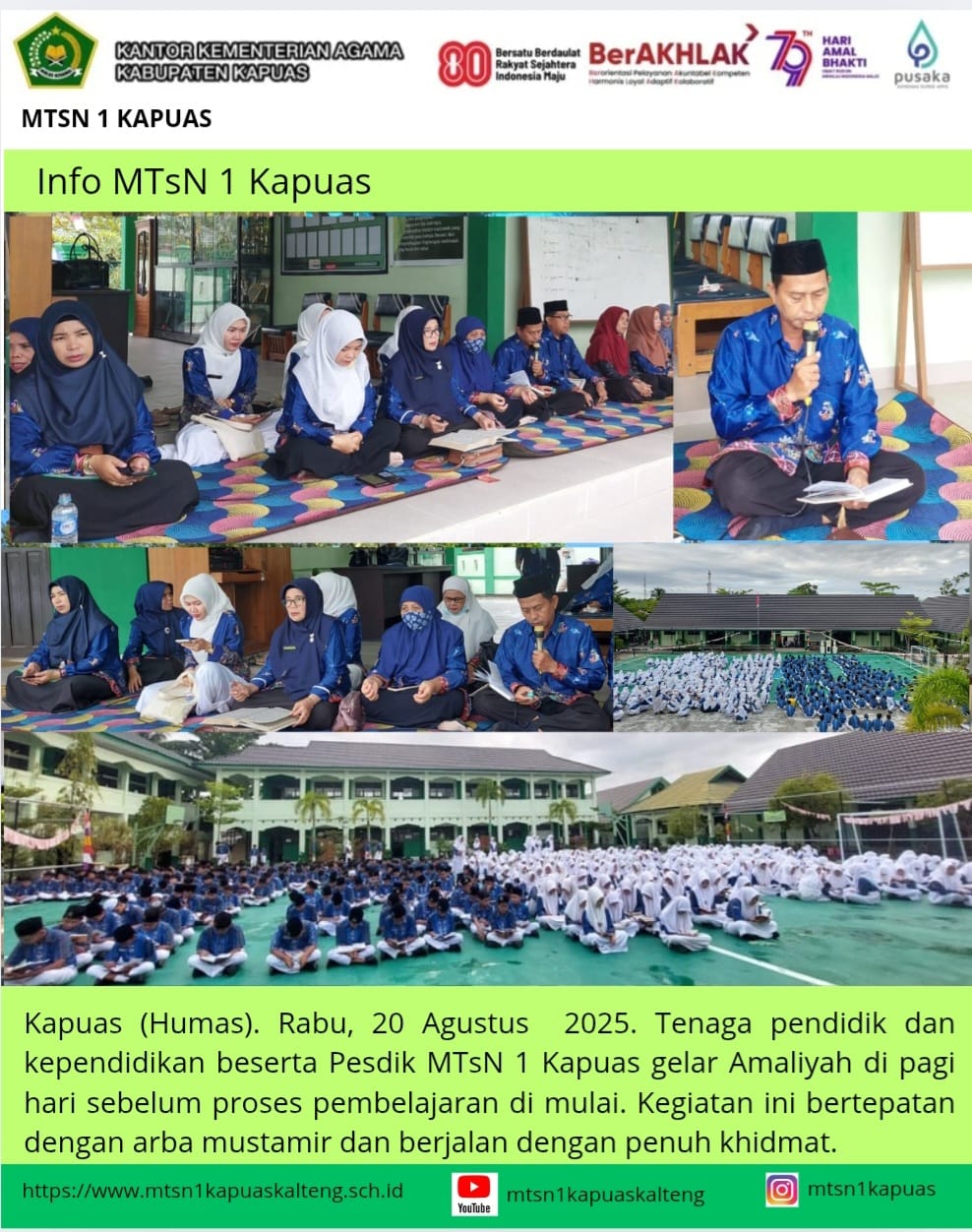Kapuas (Humas), MTsN 1 Kapuas dinobatkan menjadi juara II (dua) Pawai Ta’aruf Kafilah Musabaqah Tilawatil Qur’an dan Hadits (MTQH)Ke- 47 Tingkat Kabupaten Kapuas jenjang pelajar MTs/SMP, Minggu (07/09/2025. Kepala Madrasah Tsanawiyah Negeri 1 Kapuas, Arbainsyah mengatakan, dalam rangka menyambut dan ikut memeriahkan kegiatan&n...