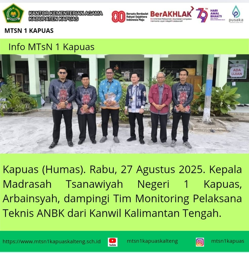 Kapuas (Humas), MTsN 1 Kapuas melaksanakan Asesmen Nasional Berbasis Komputer (ANBK). Kegiatan berlangsung mulai tanggal, 27 s/d 28 Agustus 2025. Kegiatan ini digelar di ruang leb komputer, yang diikuti oleh 45 siswa persesi. Dalam kegiatan ini, para peserta didik terlihat sangat semangat dan antusias untuk menyelesaikan soal yang dihadapinya. &n...