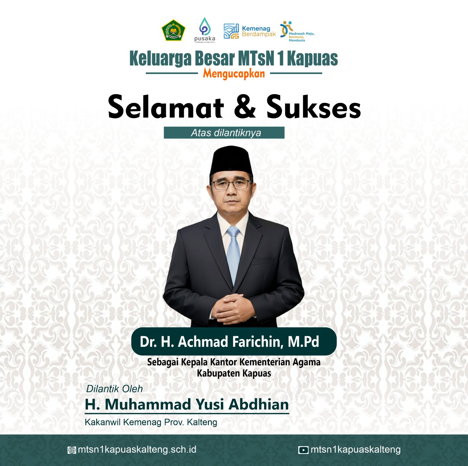 - MTsN 1 Kapuas Ucapkan Selamat & Sukses Atas di Lantiknya H. Hamidhan